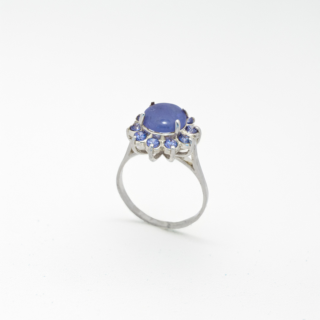 Big Bloom es un anillo en plata .925 con un diseño inspirado en la forma de una flor en plena apertura. Al centro, una piedra pulida tipo cabujón es rodeada por pequeñas gemas facetadas que evocan pétalos, creando un juego visual entre volumen y brillo. Las piedras pueden variar según disponibilidad (amatista, jade, cuarzo, circonias, entre otras), por lo que cada anillo es irrepetible.