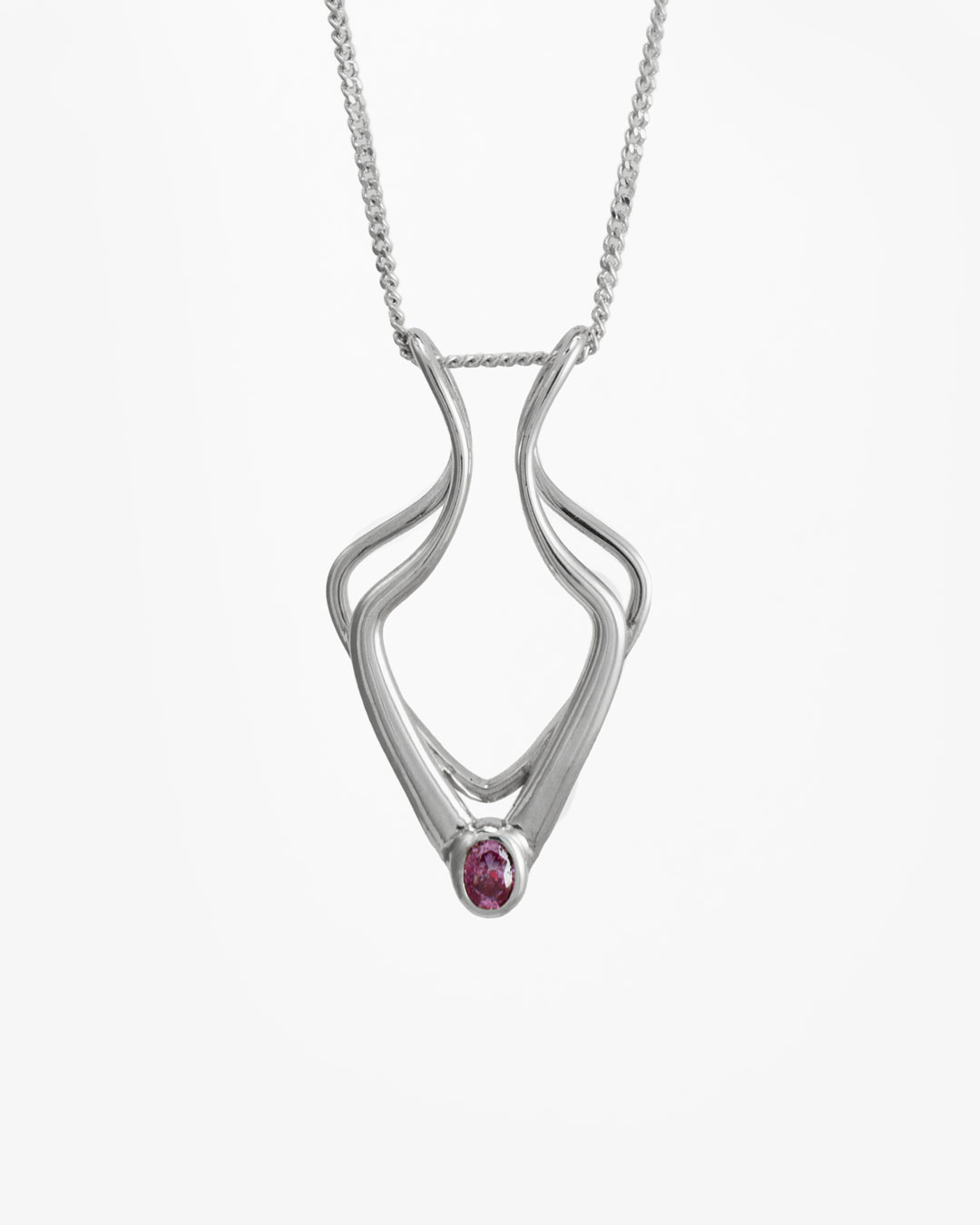 Porta anillos en plata .925 con diseño escultórico y líneas fluidas. Incorpora una circonia a elegir en color y corte, en medidas de 4 a 6 mm, sujeta a disponibilidad. El precio incluye la circonia seleccionada.